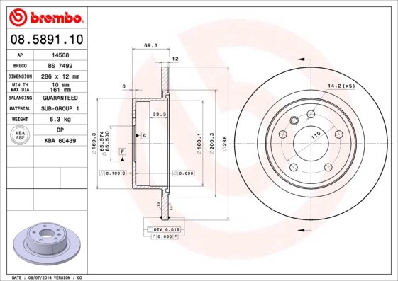 | Тип тормозного диска: | цельный |