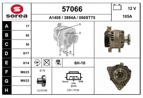 | ток зарядки от генератора (А): | 105 |