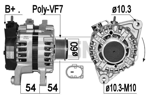 Расстояние от ременного шкива до генератора [мм]: 54